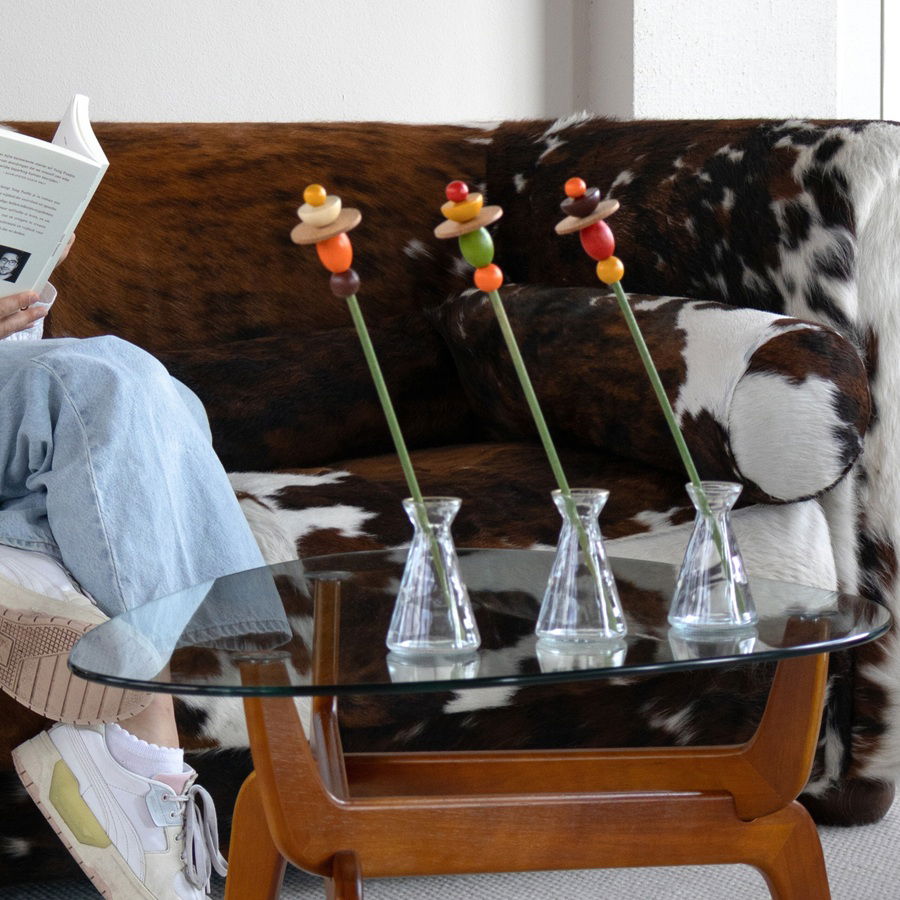 Tip: Wil je dat je houten bloemen stevig in de vaas blijven staan? Vul de bodem dan met een laagje schelpenzand. Zo blijven de stelen mooi op hun plek en krijgt je boeket net dat beetje extra flair. Dat geldt ook voor een steel in een kleine vaas.