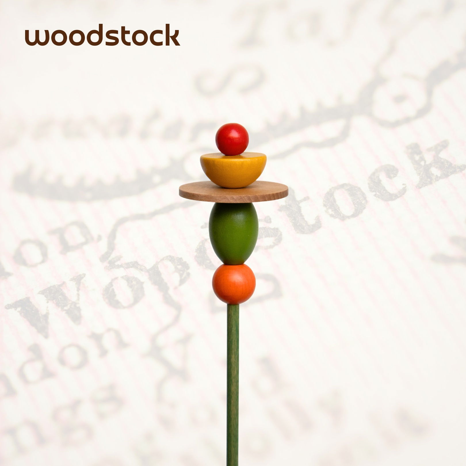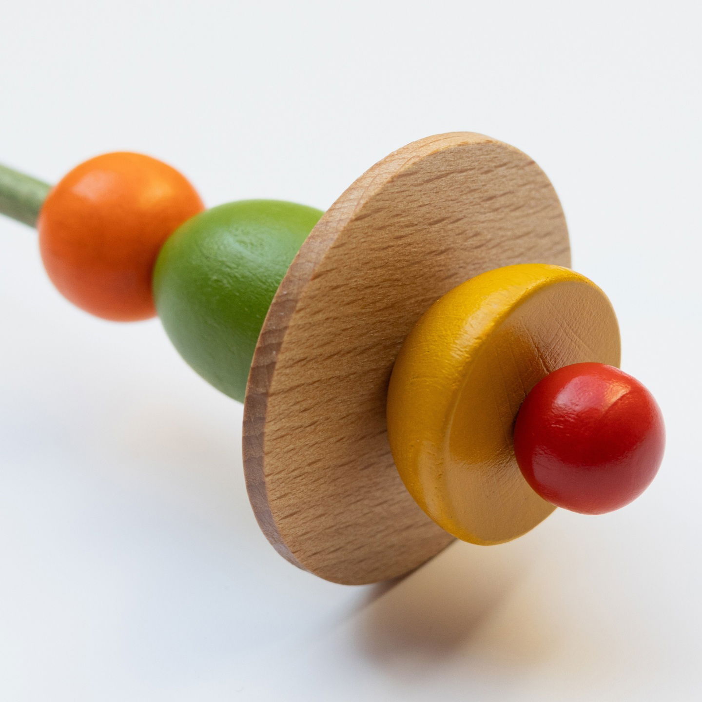 Julie is een samengestelde houten bloem in warme tinten groen, oranje, geel, rood en naturel hout. Een handgemaakt retro-accent dat barst van levenslust en kleur.