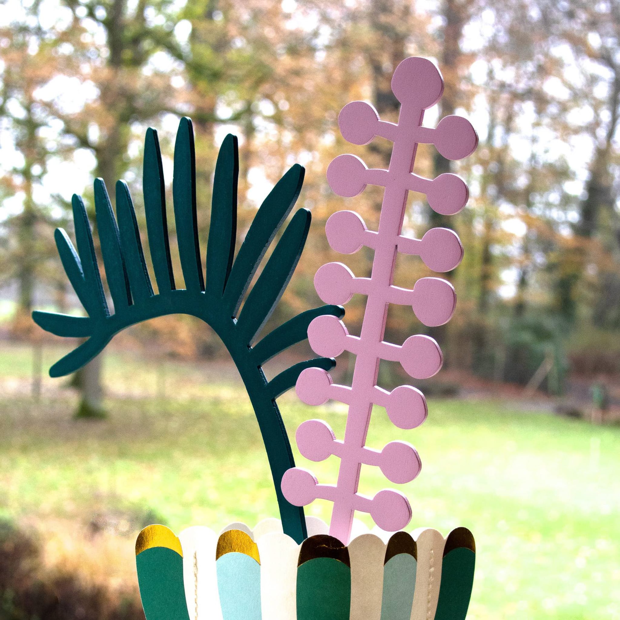 Het palmblad (groen houten blad) maakt deel uit van de collectie ‘snijbloemen’ en is gemaakt in Europa van laser gesneden hoogwaardig berkentriplex. Een duurzame en moderne decoratie die de sfeer van verse bloemen oproept, maar zonder dat deze ooit verwelkt.